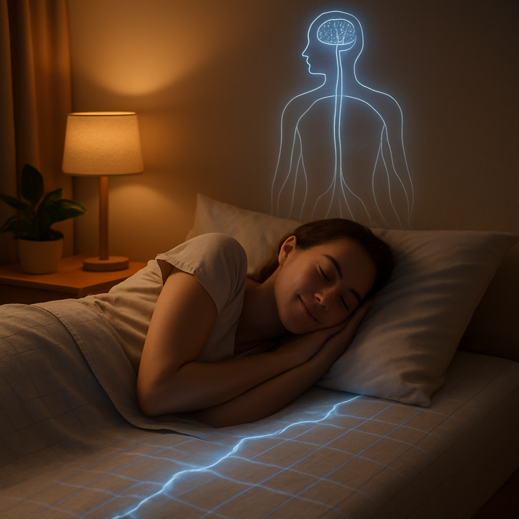 Your brain stays wired with anxious thoughts, tomorrow's worries, and that embarrassing thing you said in 2019. The silver-threaded fabric connects you to Earth's electrical field, shifting your nervous system from fight-or-flight to rest-and-digest mode. No meditation required. No breathing exercises. Your cortisol naturally drops while you do absolutely nothing but lie there.